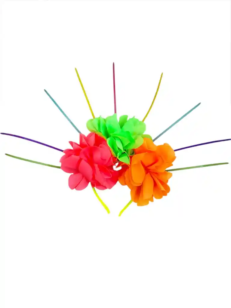 Hermosa Vincha de Flores Grandes en colores Neón Ideales para Hora Loca, Carnaval, Cumpleaños, Halloween y demás celebraciones