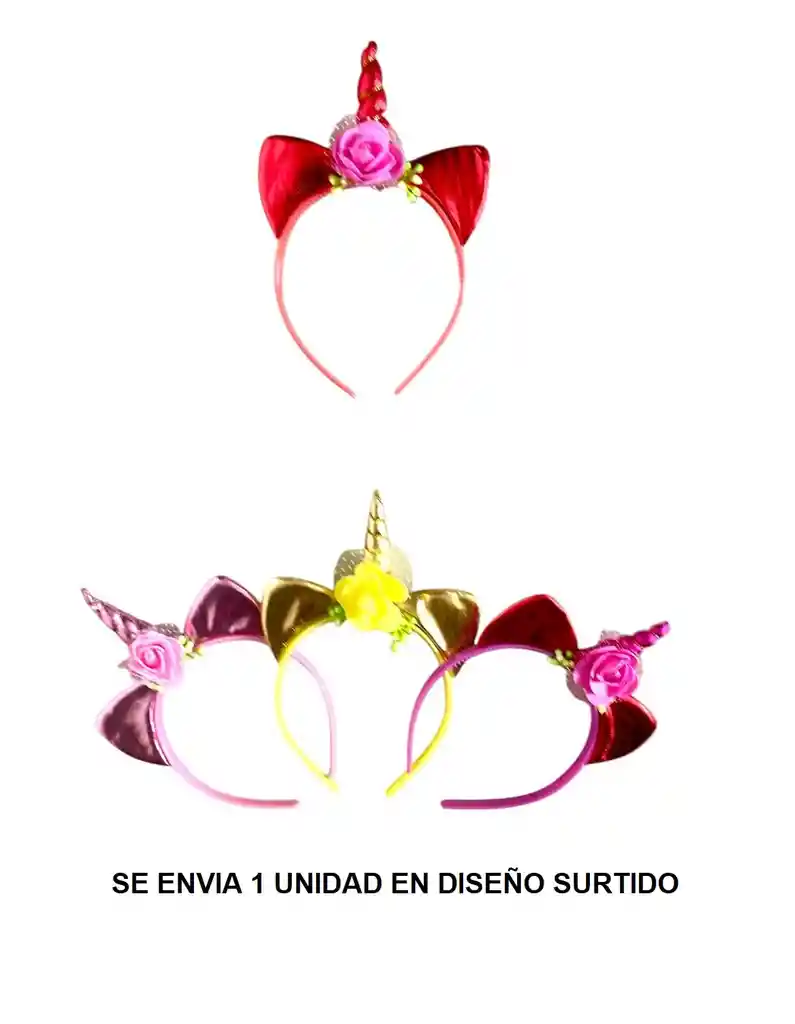 Vincha Diadema Unicornio, ideal para cumpleaños, carnaval, Halloween. En la imagen se muestran los colores de las diademas y se despachan segun disponibiidad Unidad de venta es 1 diadema