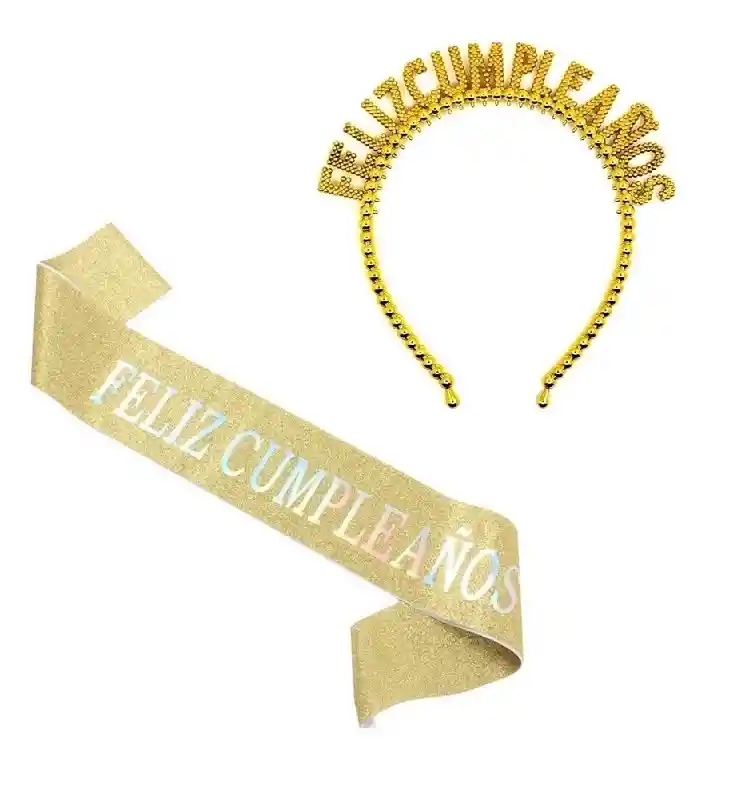 Vincha Diadema + Banda Feliz Cumpleaños En Dorado Banda Feliz Cumpleaños Con Letras Plateadas En Tornasol Diadema Feliz Cumpleaños Con Letras En Grabado De Puntos