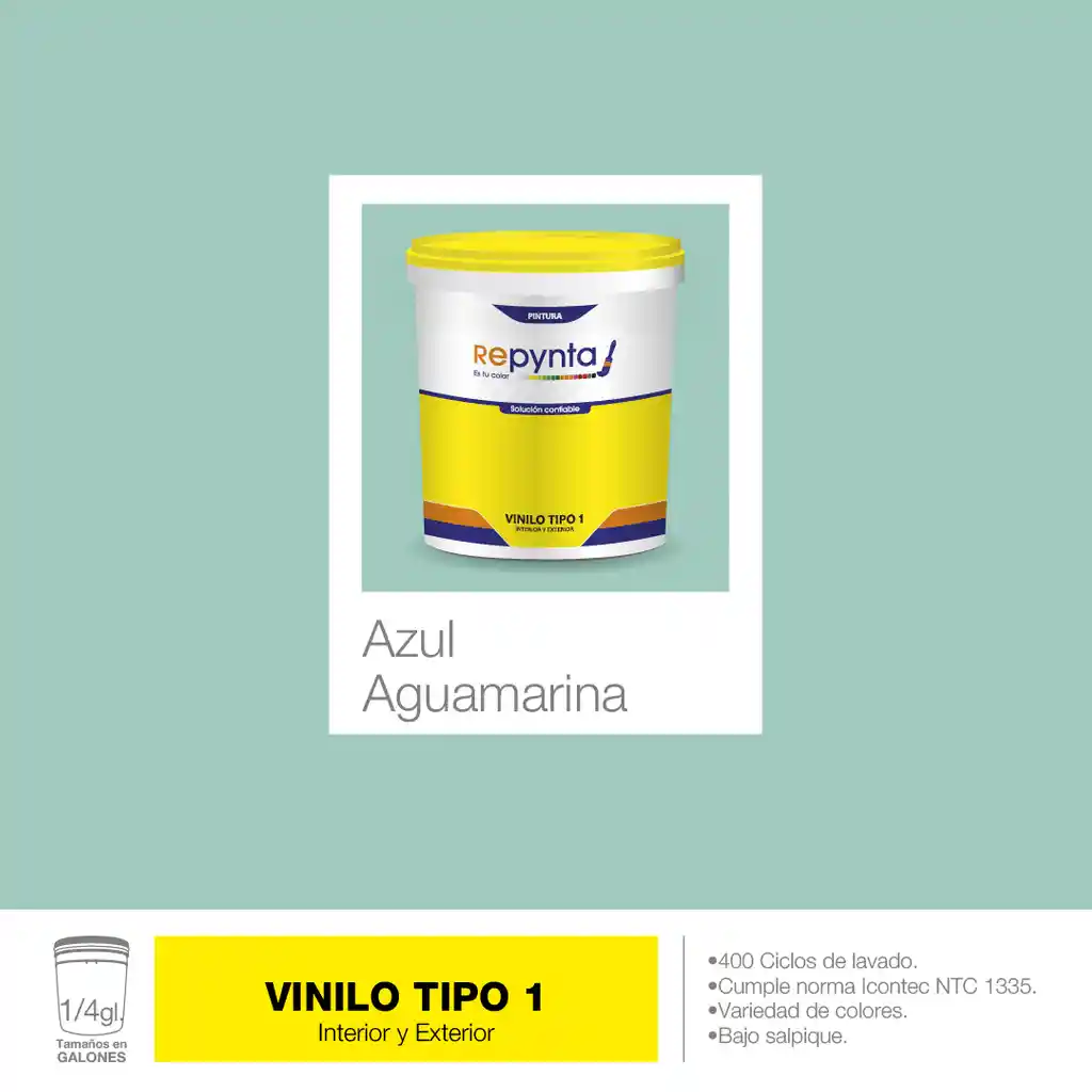 Vinilo Base Agua Tipo 1 Azul Aguamarina (1/4 Galón) Repynta