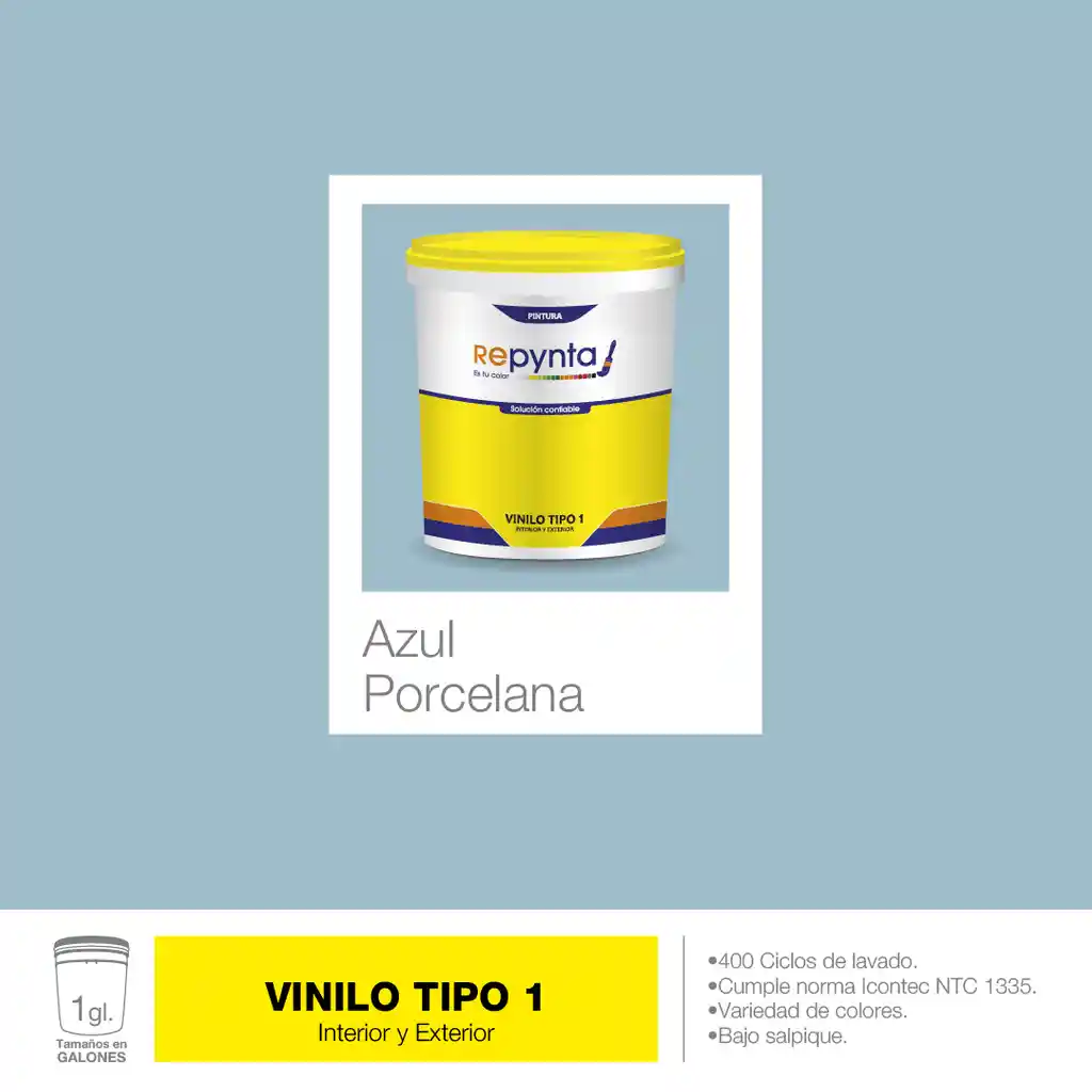 Vinilo Base Agua Tipo 1 Azul Porcelana (1 Galón) Repynta