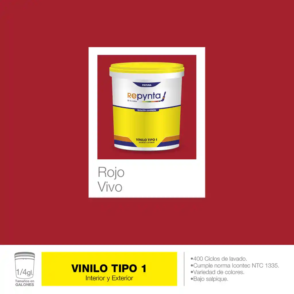 Vinilo Base Agua Tipo 1 Rojo Colonia (1/4 Galón) Repynta