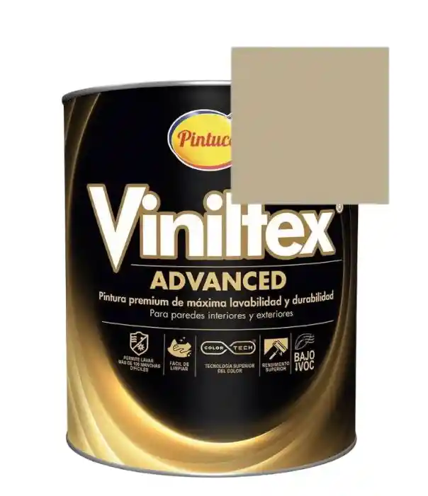 Recomendada para decorar y proteger muros y cielos rasos de residencias, oficinas, zonas de alto tráfico y edificaciones en general, en ambientes interiores y exteriores bajo sombra. Disponible en una amplia gama de colores. Viniltex Advanced es una pintura Tipo 1* diluible con agua, fabricada a partir de copolímeros Acrílicos. Cuenta con una emulsión siliconada que permite máxima lavabilidad, resistencia al frote sin desgaste por desprendimiento y alta resistencia a la formación de hongos. Producto formulado sin plomo ni cromo. Acabado mate.