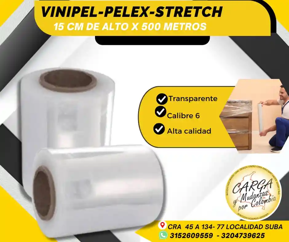 El Pelex transparente (también conocido como Vinipel Stretch o Stretch Film) es una película plástica transparente y resistente, que se utiliza en el embalaje y la logística para envolver y proteger productos. Su principal función es asegurar la carga en cajas y estibas, evitando movimientos durante el transporte y almacenamiento. - Protege los productos individuales, como cajas, paquetes o bultos. - Aporta mayor estabilidad y resistencia a la carga, reduciendo el riesgo de roturas o daños. - Aisla de la humedad, sol y polvo. Color: Transparente Medidas: 15 cm de alto x 500 mts de largo Alta Calidad - Producto Garantizado. Visítanos: Cr. 45a # 134 - 77 Local Esquina