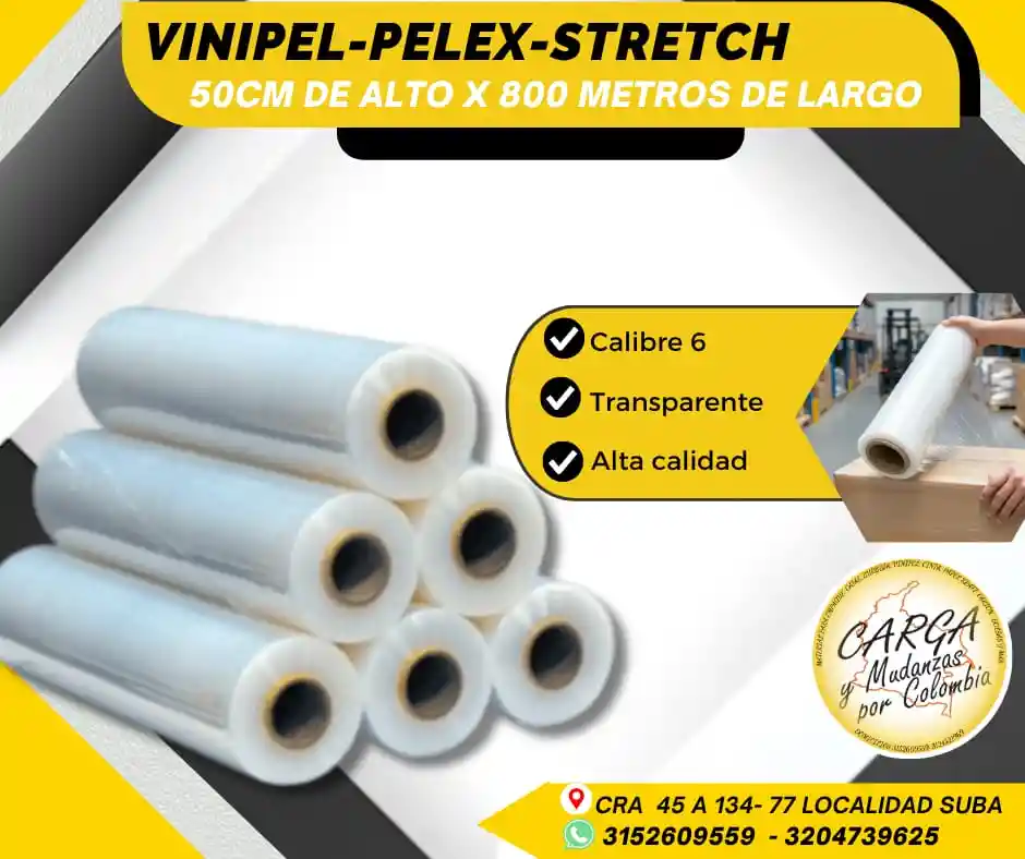 El Pelex transparente (también conocido como Vinipel Stretch o Stretch Film) es una película plástica transparente y resistente, que se utiliza en el embalaje y la logística para envolver y proteger productos. Su principal función es asegurar la carga en cajas y estibas, evitando movimientos durante el transporte y almacenamiento. - Protege los productos individuales, como cajas, paquetes o bultos. - Aporta mayor estabilidad y resistencia a la carga, reduciendo el riesgo de roturas o daños. - Aisla de la humedad, sol y polvo. Color: Transparente Medidas: 50 cm de alto x 800 mts de largo Alta Calidad - Producto Garantizado. Visítanos: Cr. 45a # 134 - 77 Local Esquina