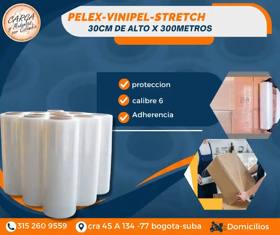 El Pelex transparente (también conocido como Vinipel Stretch o Stretch Film) es una película plástica transparente y resistente, que se utiliza en el embalaje y la logística para envolver y proteger productos. Su principal función es asegurar la carga en cajas y estibas, evitando movimientos durante el transporte y almacenamiento. - Protege los productos individuales, como cajas, paquetes o bultos. - Aporta mayor estabilidad y resistencia a la carga, reduciendo el riesgo de roturas o daños. - Aisla de la humedad, sol y polvo. Color: Transparente Medidas: 30 cm de alto x 300 mts de largo Alta Calidad - Producto Garantizado. Visítanos: Cr. 45a # 134 - 77 Local Esquina