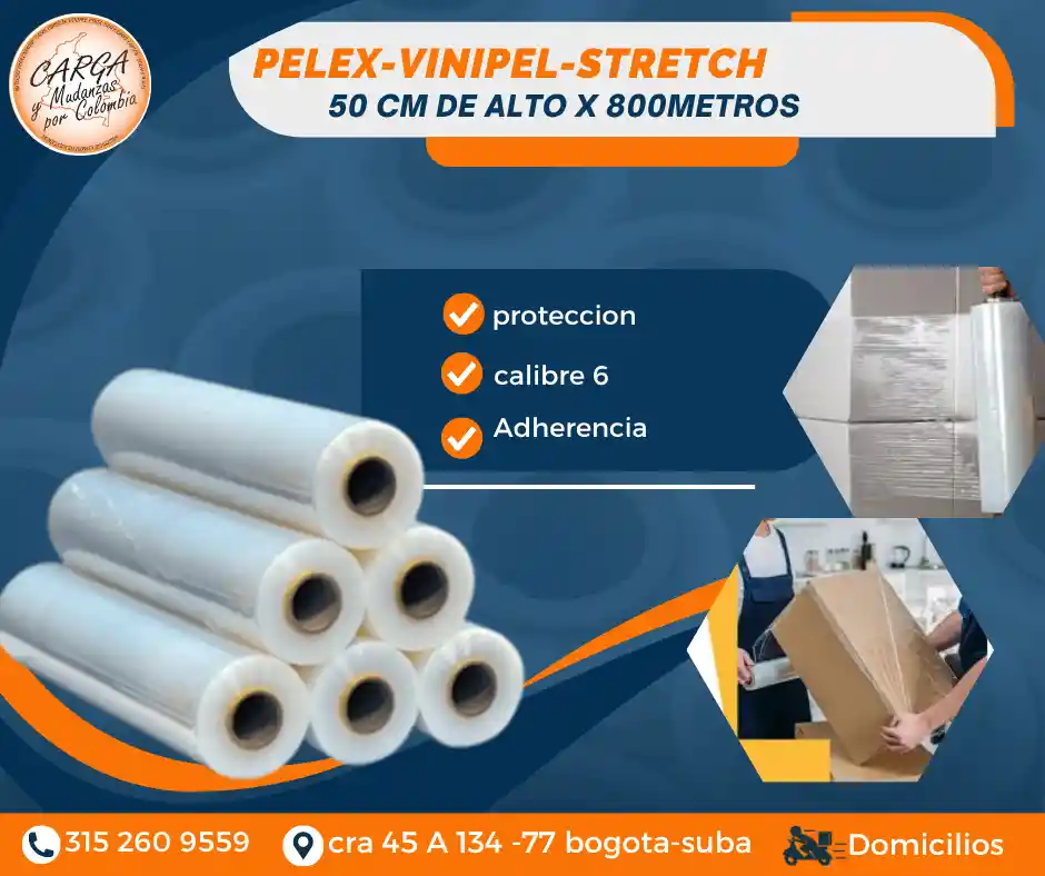El Pelex transparente (también conocido como Vinipel Stretch o Stretch Film) es una película plástica transparente y resistente, que se utiliza en el embalaje y la logística para envolver y proteger productos. Su principal función es asegurar la carga en cajas y estibas, evitando movimientos durante el transporte y almacenamiento. - Protege los productos individuales, como cajas, paquetes o bultos. - Aporta mayor estabilidad y resistencia a la carga, reduciendo el riesgo de roturas o daños. - Aisla de la humedad, sol y polvo. Color: Transparente Medidas: 50 cm de alto x 800 mts de largo Alta Calidad - Producto Garantizado. Visítanos: Cr. 45a # 134 - 77 Local Esquina