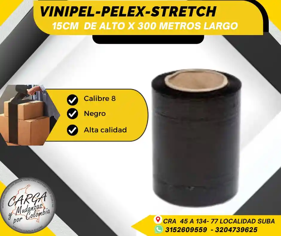El Pelex transparente (también conocido como Vinipel Stretch o Stretch Film) es una película plástica transparente y resistente, que se utiliza en el embalaje y la logística para envolver y proteger productos. Su principal función es asegurar la carga en cajas y estibas, evitando movimientos durante el transporte y almacenamiento. - Protege los productos individuales, como cajas, paquetes o bultos. - Aporta mayor estabilidad y resistencia a la carga, reduciendo el riesgo de roturas o daños. - Aisla de la humedad, sol y polvo. Color: NEGRO Medidas: 15 cm de alto x 300 mts de largo Alta Calidad - Producto Garantizado. Visítanos: Cr. 45a # 134 - 77 Local Esquina