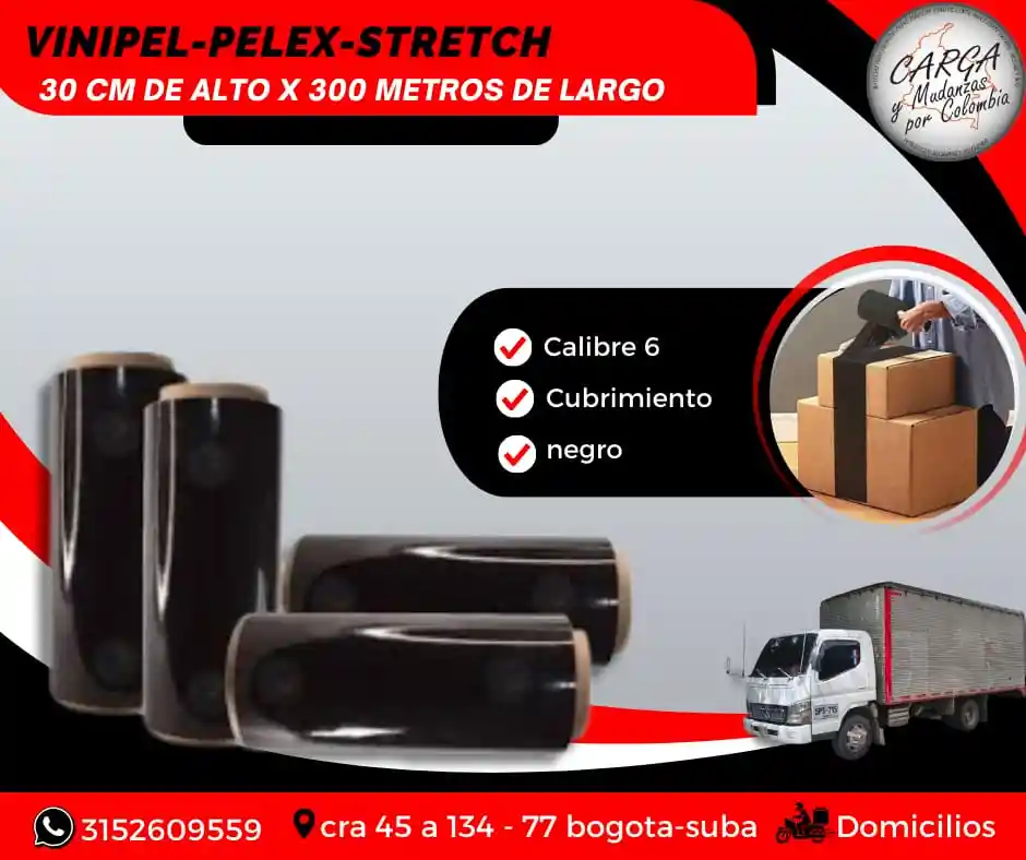El Pelex transparente (también conocido como Vinipel Stretch o Stretch Film) es una película plástica transparente y resistente, que se utiliza en el embalaje y la logística para envolver y proteger productos. Su principal función es asegurar la carga en cajas y estibas, evitando movimientos durante el transporte y almacenamiento. - Protege los productos individuales, como cajas, paquetes o bultos. - Aporta mayor estabilidad y resistencia a la carga, reduciendo el riesgo de roturas o daños. - Aisla de la humedad, sol y polvo. Color: NEGRO Medidas: 30 cm de alto x 500 mts de largo Alta Calidad - Producto Garantizado. Visítanos: Cr. 45a # 134 - 77 Local Esquina