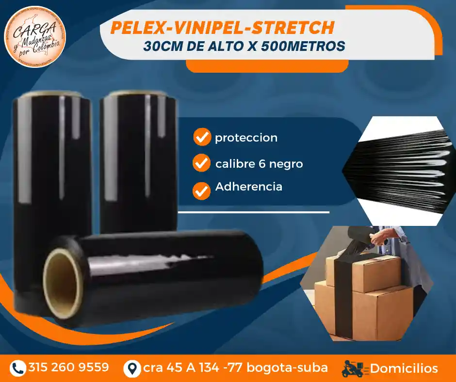 El Pelex transparente (también conocido como Vinipel Stretch o Stretch Film) es una película plástica transparente y resistente, que se utiliza en el embalaje y la logística para envolver y proteger productos. Su principal función es asegurar la carga en cajas y estibas, evitando movimientos durante el transporte y almacenamiento. - Protege los productos individuales, como cajas, paquetes o bultos. - Aporta mayor estabilidad y resistencia a la carga, reduciendo el riesgo de roturas o daños. - Aisla de la humedad, sol y polvo. Color: NEGRO Medidas: 30 cm de alto x 500 mts de largo Alta Calidad - Producto Garantizado. Visítanos: Cr. 45a # 134 - 77 Local Esquina