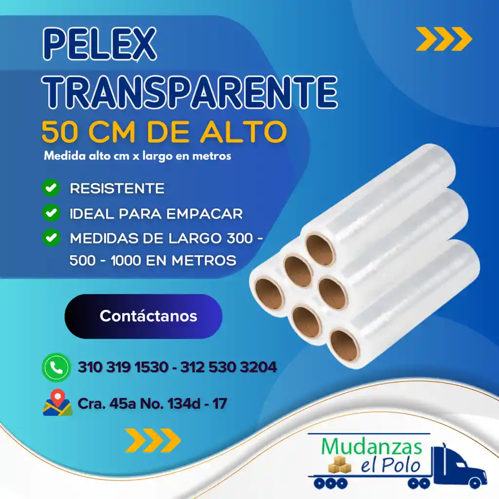 Es una película plástica de alta capacidad de elongación, fabricada con base en polietileno de muy baja densidad que a pesar de su bajo calibre tiene una alta resistencia mecánica por lo que se sugiere para embalaje de una amplia gama de productos. * Medidas: 50 cm de alto x 1000 mts de largo. * Calidad Garantizada Contáctanos: 310 319 1530 - Ubicación: Cr. 45a No. 134d - 17 Bogotá D.C