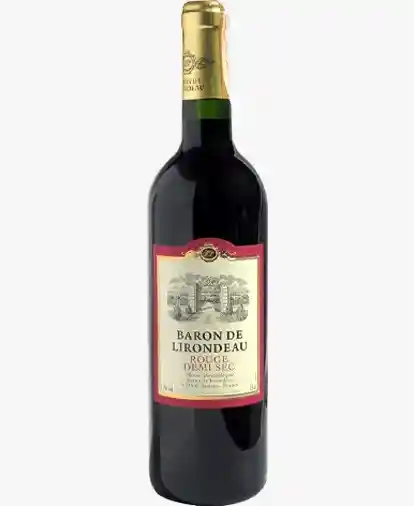 Baron de Lirondeau Rojo 750 ml Vino tinto francés de estilo ligero y frutal, con aromas a frutos rojos maduros y suaves notas especiadas. En boca es equilibrado y fácil de beber, ideal para acompañar carnes blancas, pastas con salsa roja y quesos suaves.