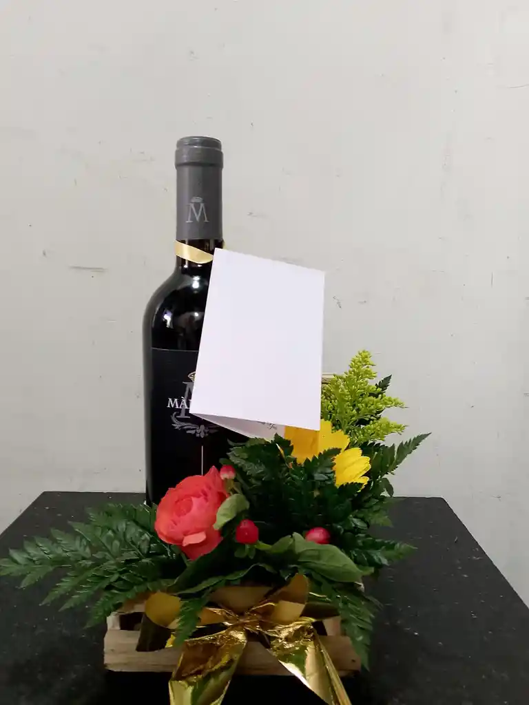 vino decorado con flores de temporada especial para regalar a cualquier persona especial