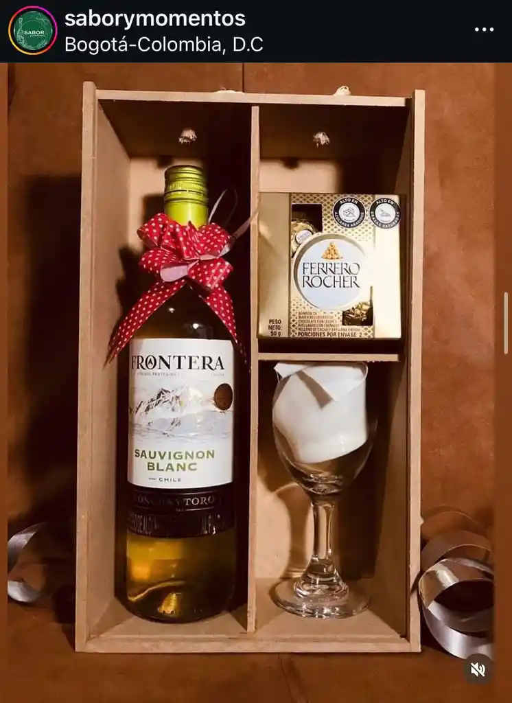 Vino Blanco, Frontera Sauvignon Blanc, de Chile (Concha y Toro) efresca el día con sabores frutales y aromas cítricos. Perfecto para acompañar interminables conversaciones durante una tarde calurosa. Sirve nuestro Sauvignon Blanc lo más frío que puedas, para disfrutar al máximo sus expresiones brillantes y ligeramente ácidas. Acompañado de chocolates Ferrero Roché X 4, copa de vino, en una caja cofre de madera con moño para decorar, con un valor de $95.000 m/Cte