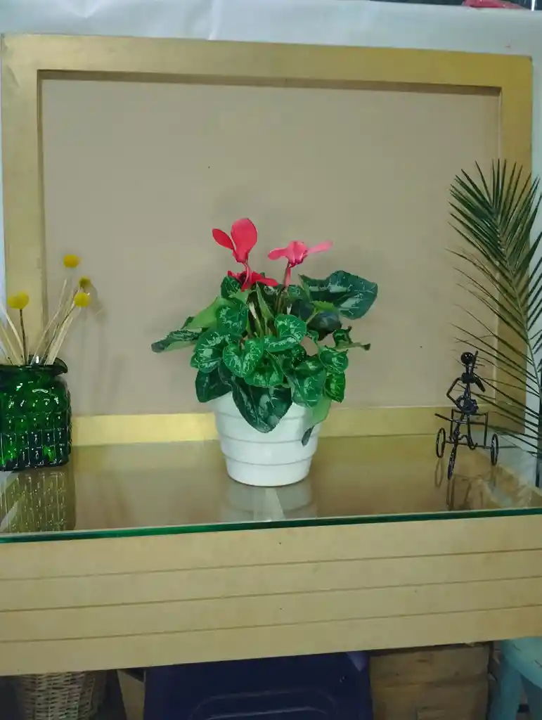 hermosa planta de violeta de los Alpes en matera de cerámica. (el color de la violeta puede cambiar)