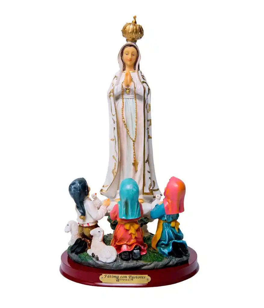 Hermosa y decorativa figura de la Virgen De Fátima Con Pastores Material: Marmolina Italiana Medidas: 20 cm Marca: FIRENZI 100 % Nuevo Excelente calidad