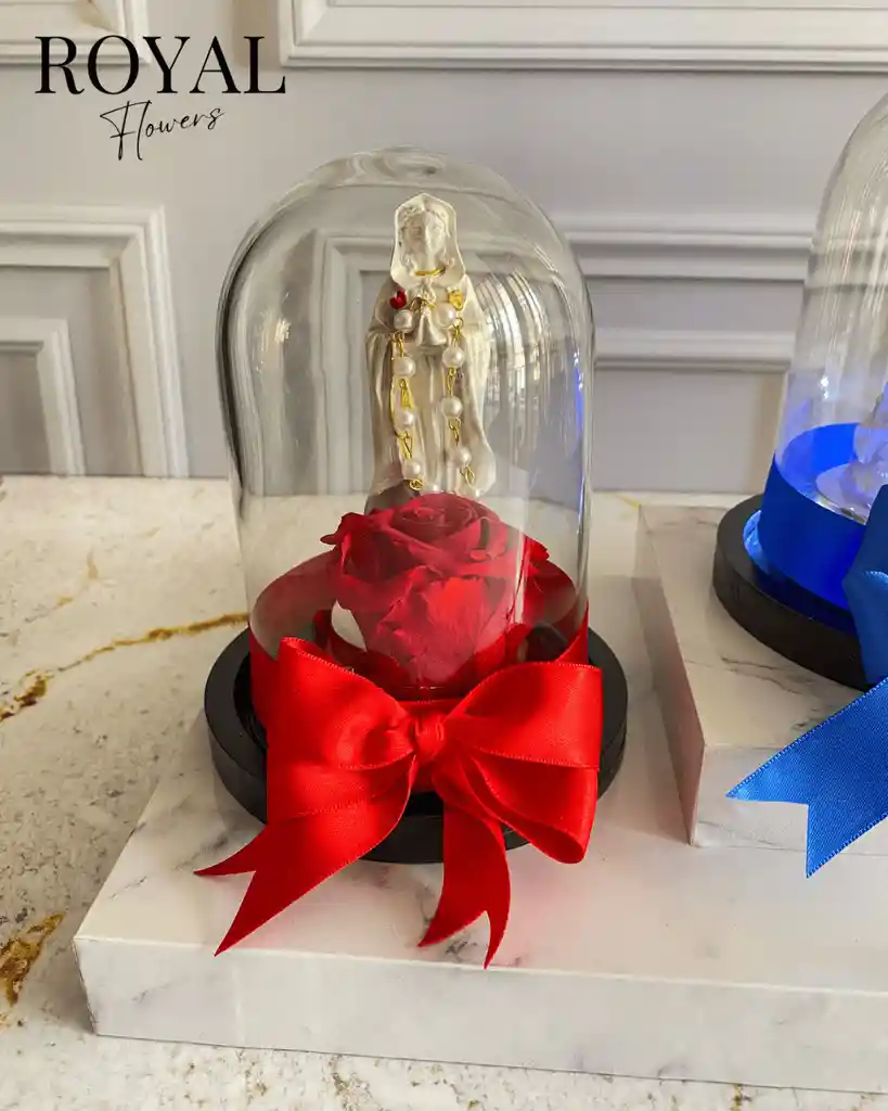 •Vírgenes y santos de 12 a 13 cm pintados en blanco perlado en marmolina ❤️ •Alcanza una altura de 17 cm con la cúpula de vidrio •Acompañados de rosas naturales preservadas con una duración de 2 a 5 años • Vienen en su cupula de vidrio y con un denario (escapulario pequeño) •Escoge el color de la rosa, del moño, y la virgen que más te guste •Tambien puedes agregar un mensaje en la tarjeta • Empacadas en bolsa de regalo ¡lista para regalar! ELIJE EL COLOR DE LA ROSA, DEJA TU ELECCIÓN EN LOS COMENTARIOS
