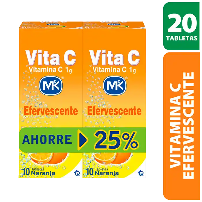 Duopack Vita C + Zinc MK Efervescente 1gr. Vitamina C Naranja 20 tabletas
