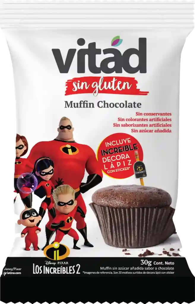 Muffin sin azúcar añadida Vitád libre de conservantes y colorantes artificiales. Incluye decora lápiz.. Formato 30 g.