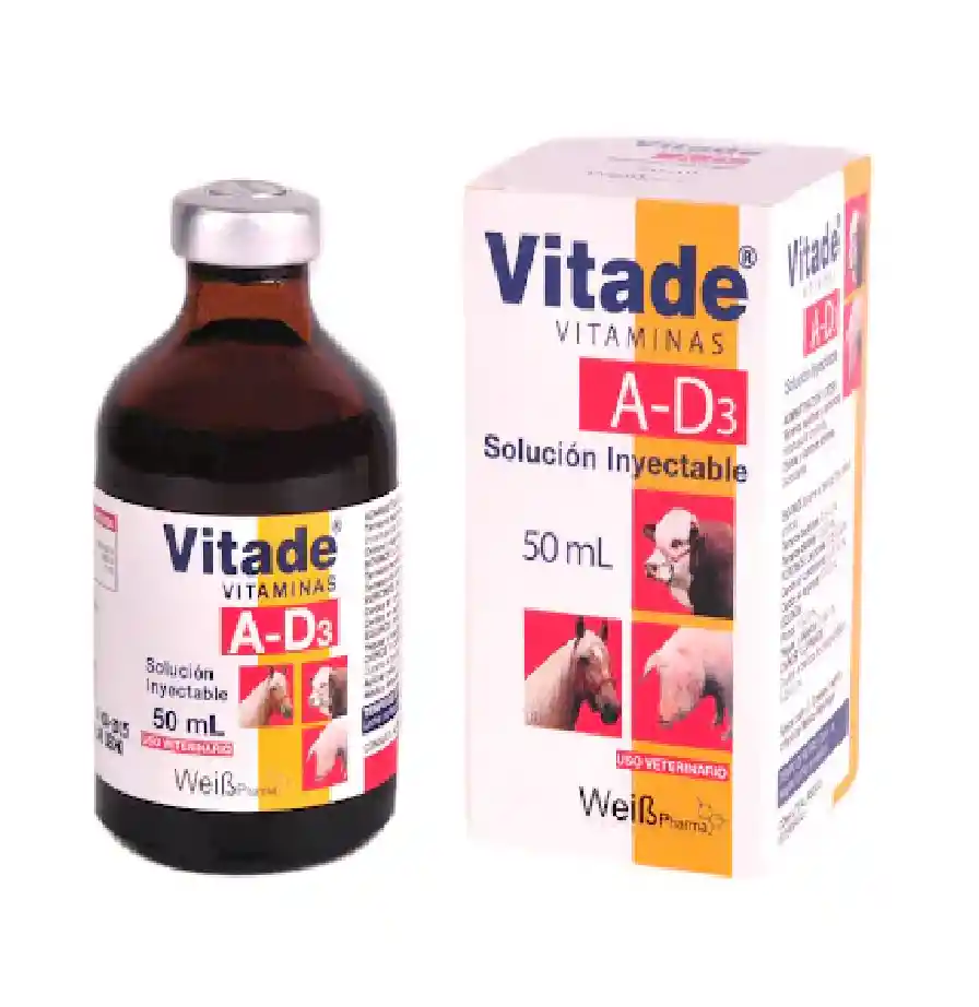 La combinación de Vitade A-D3, vitaminas A, D3 y E (como excipiente), constituye un excelente recurso terapéutico en los animales domésticos sometidos a tensión por exigencias fisiológicas extremas en los diferentes estados de producción. Es altamente favorable en todos los casos de deficiencia, sean leves o severos.