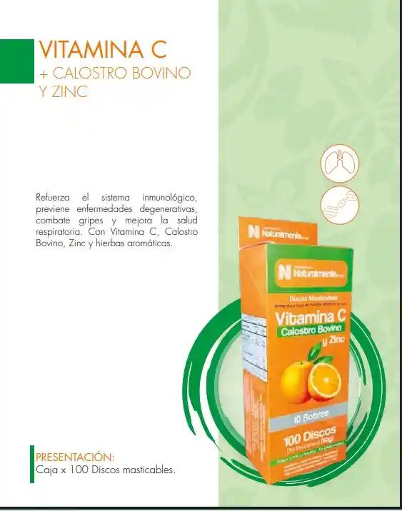 Vitamina C + Calostro Bovino Y Zinc X 100 Tab Masticables
