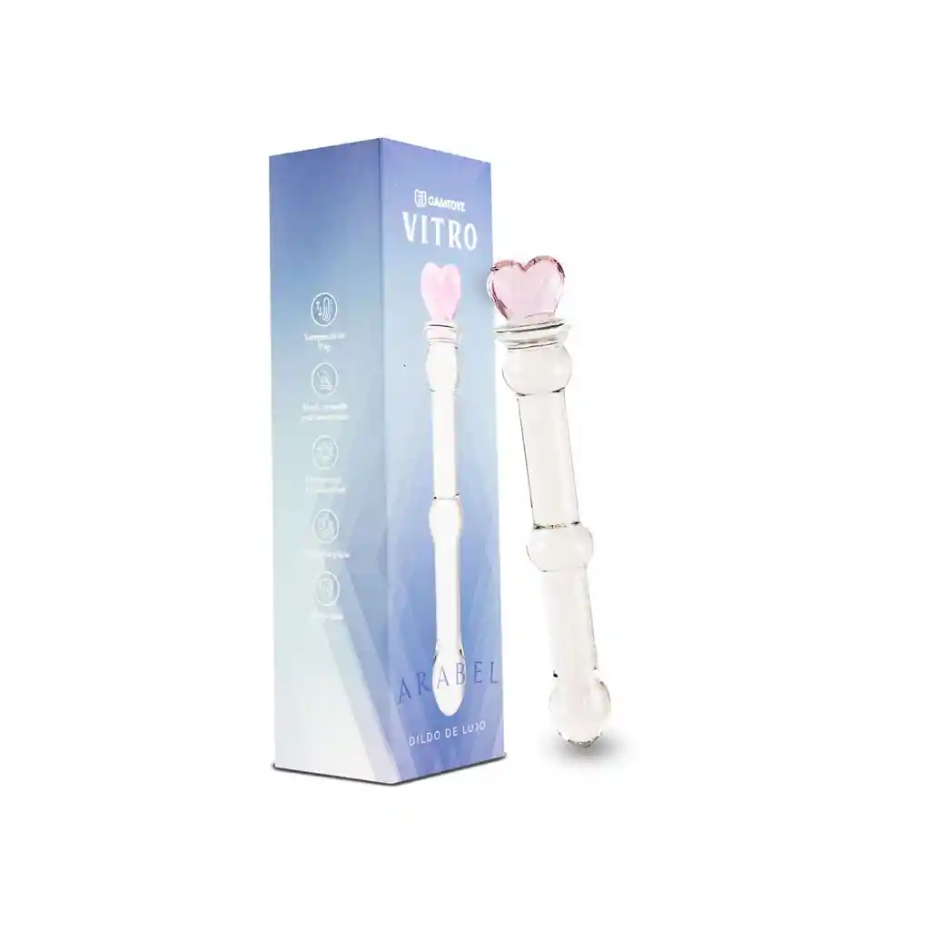 Este sofisticado dildo de vidrio transparente no solo es un deleite para la vista, sino que también lleva la experiencia sensorial a nuevas alturas. El diseño en forma de corazón en la punta añade un toque de elegancia y distinción, haciendo que el Dildo de Vidrio Arabel sea una verdadera joya en tu colección. La línea exclusiva Vitro de Camtoyz se enorgullece de ofrecer productos únicos. Lo que hace que el Dildo de Vidrio Arabel sea realmente especial es su lado insertable, que presenta tres bolas estratégicamente colocadas. Estas bolas proporcionan una sensación única y estimulante que te invitará a explorar nuevas fronteras del placer.