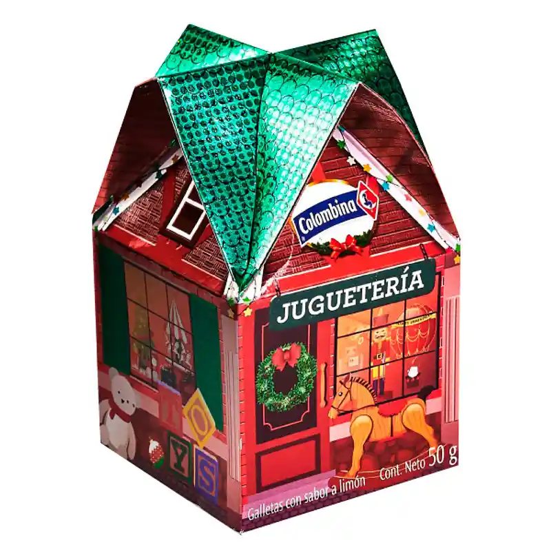 Galleras especiales para compartir y regalar en navidad. Sabor a limón. Caja en forma de casa navideña con 50 g. Packing: Caja