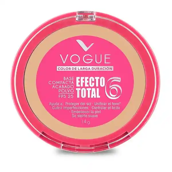 Base compacta acabada efecto total, ayuda a proteger del sol, unificar el tono, cubrir imperfecciones, controlar el brillo, embellecer la piel. Contiene 14 gramos.