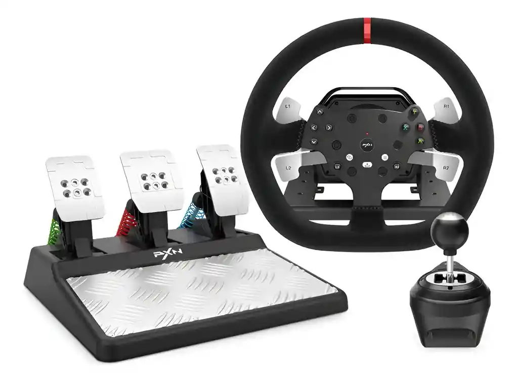 El volante PXN V10 es la herramienta ideal para los entusiastas de los simuladores de manejo que buscan una experiencia inmersiva y realista. Diseñado con un elegante acabado en negro, este volante cuenta con un movimiento preciso que te permitirá sentir cada curva y cada aceleración como si estuvieses detrás del volante de un automóvil de carreras. Incluye una pedalera y una caja de cambios que te proporcionarán un control total sobre la conducción. Con su soporte para volante y pedales, podrás adaptarlo fácilmente a tu espacio de juego, optimizando tu comodidad y rendimiento durante largas sesiones de simulación. Compatible con PC y Xbox, este volante se adapta a diferentes estilos de juego, siendo una excelente opción tanto para gamers casuales como para los más competitivos. Lleva tus habilidades de conducción al siguiente nivel mientras disfrutas de una variedad de títulos en tu consola o PC. Este producto es perfecto para quienes buscan perfeccionar su técnica de manejo o simplemente deseen disfrutar de una experiencia de conducción más auténtica. No dejes pasar la oportunidad de sumergirte en el mundo del automovilismo con el volante PXN V10. Garantía del vendedor: 3 meses