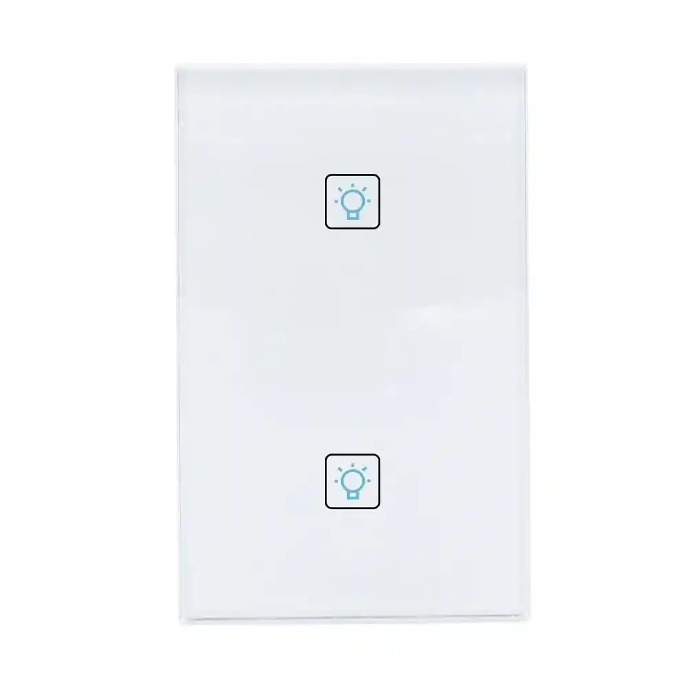 Interruptor Táctil Doble Con Activación Remota Por Aplicación. Controle de Forma Manual o Remota Sus Bombillos o Iluminación, Programe el Tiempo de Encendido o Apagado Activación Desde la Aplicación Menor a 2 Segundos. Diseño Elegante y Compacto de Fácil Instalación y Configuración. Modo de Instalación: Empotrado en la Pared Acabados Perfectos Con Materiales de Alta Resistencia