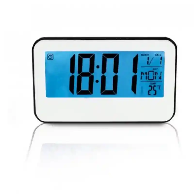 Reloj Digital Con Alarma, Temporizador e Indicador de Temperatura. Display Lcd Digital de 5'' Formato de Hora 12 o 24 Horas. La Función de Iluminación de Pantalla de Puede Activar Así: Función de Snooze Ajustable. Multilenguaje. Hora Mundial Hasta 16 Zonas. 8 Melodías Para Configurar Sonido de Alarma. Uso Interior. Sku- 202871