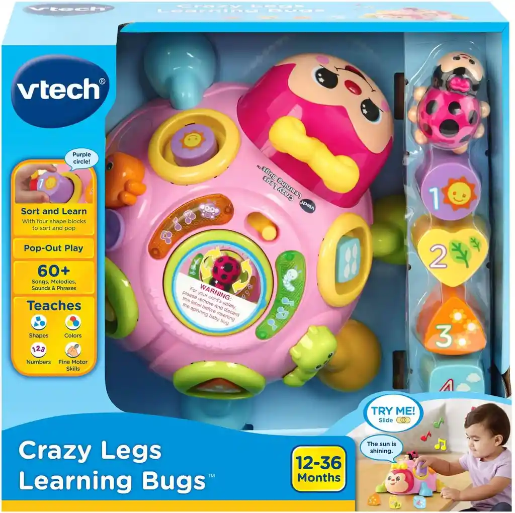 Juguete de mariquita loca, tambaleante y amigos insectos, enseñan formas, colores, números y naturaleza Dos amigos de insectos introducen sonidos y música con botones iluminados en la espalda de la mariquita Gira el ala de mariposa, gira la oruga y gira la mariquita bebé para practicar habilidades motoras Ordena los bloques de forma colorida y luego sácalos presionando la mariquita bebé en la espalda de la mariquita de la mamá Diseñado para edades de 12 a 36 meses. Requiere 2 pilas AA. Baterías incluidas solo para fines de demostración. Baterías nuevas recomendadas para uso regular TODOS NUESTROS PRODUCTOS SON NUEVOS Y 100% ORIGINALES. °PRODUCTO IMPORTADO DESDE U.S.A - 100% ORIGINALES
