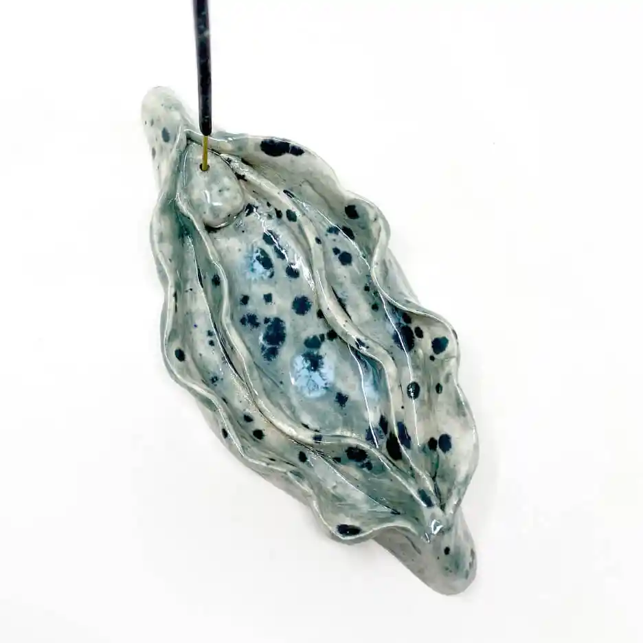 Cada vulva es única, son porta inciensos de cerámica artesanal con pátina y colores surtidos, al comprarla recibirás aleatoriamente una de estas.