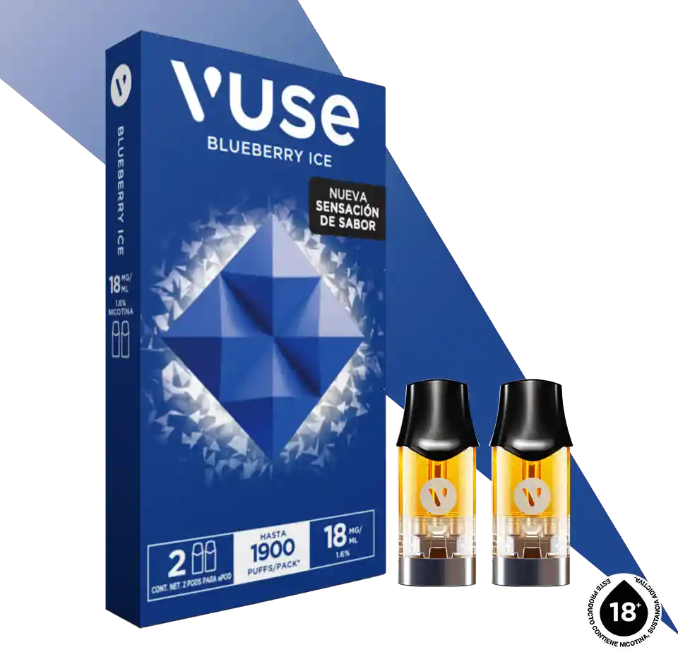 Vuse Classic Blueberry Ice Capsulas. 2 Pods Prohibida la venta a menores de edad. Producto nocivo para la salud que contiene nicotina, sustancia altamente adictiva. Antes de consumir consulte las indicaciones y contraindicaciones de uso