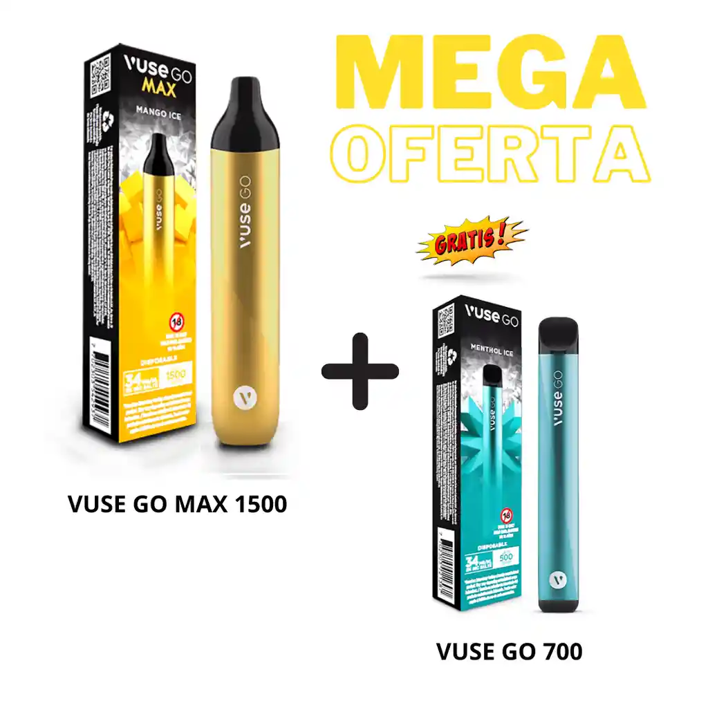 Vuse Go Max es un vapeador desechable. Contiene 1 und de dispositivo con batería no recargable, precargado hasta con 1.500 Puff*. (5 ml de líquido con sales de nicotina) Sabor: Mango Ice Nivel de nicotina: 34mg/ml - 3% *Puff= Inhalaciones. Puede variar según el hábito de uso de cada consumidor. Gratis Vuse Go Menthol Ice es un vapeador desechable. Contiene 1 und de dispositivo con batería no recargable, precargado hasta con 500 *Puff. (2 ml de líquido con sales de nicotina). Sabor: Menta Ice Nivel de nicotina: 34mg/ml - 3% *Puff= Inhalaciones. Puede variar según el hábito de uso de cada consumidor. Producto exclusivo para mayores de edad, contiene nicotina sustancia adictiva.