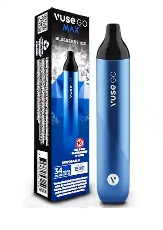 Vuse Go Max Blueberry Ice 34 mg. Contiene 1 und de dispositivo con batería no recargable, precargado hasta con 1.500 Puff. (5 ml de líquido con sales de nicotina) Sabor: Arándanos Ice Nivel de nicotina: 34mg/ml - 3% Puff. Inhalaciones. Puede variar según el hábito de uso de cada consumidor.