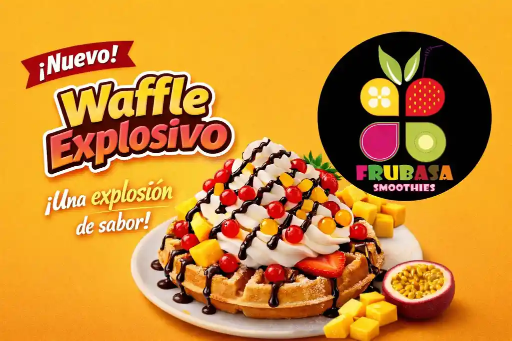WAFFLE PERSONAL CON FRUTAS PICADAS MANGO FRESA BANANO Y CREMA CHANTILLI O HELADO Y BOLITAS EXPLOSIVAS MARACUYA Y FRESA