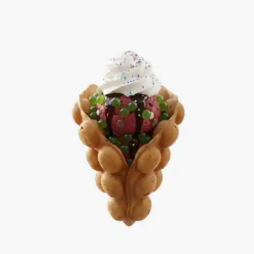 El favorito de siempre. Disfruta de 1 waffle con 1 porción de helado, 1 topping y 1 salsa. Decorado con crema chantilly y grajeas. Pregúntanos por los sabores de helado, toppings y salsas disponibles.