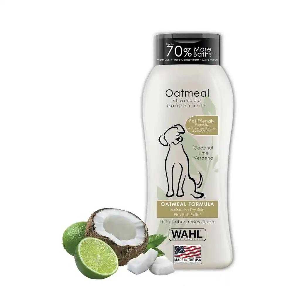 Fabricado en los Estados Unidos: nuestro champú de fórmula de avena para mascotas tiene pH equilibrado, sin alcohol, sin parabenos, sin PEG-80 y es altamente recomendado para hidratar la piel seca y proporcionar alivio de la picazón Fórmula de avena: este champú para mascotas con aroma a verbena de coco y lima es ideal para hidratar la piel seca, limpiar abrigos sucios y aliviar la picazón. La espuma gruesa se enjuaga y mantiene a tu mascota con un aspecto y olor limpio Menos es más: Wahl tiene un concentrado más alto de un agente de sodding derivado del coco, lo que significa que no tienes que usar tanto producto como otros champús para perros. Un poco de champú ayuda mucho y proporciona una rica espuma que es fácil de enjuagar Apto para alergias: nuestro ícono de perro, Rocket, fue diseñado a la imagen de nuestro perro de la familia, Cooper, un goldendoodle que tiene alergias severas. Hemos encontrado que este champú es seguro y efectivo para él. ¡Nos encanta el olor también! La marca utilizada por profesionales: Wahl ha estado sirviendo a veterinarios y peluqueros profesionales durante más de 50 años. Como compañía de amantes de los animales, creemos que tu mascota merece lo mejor.
