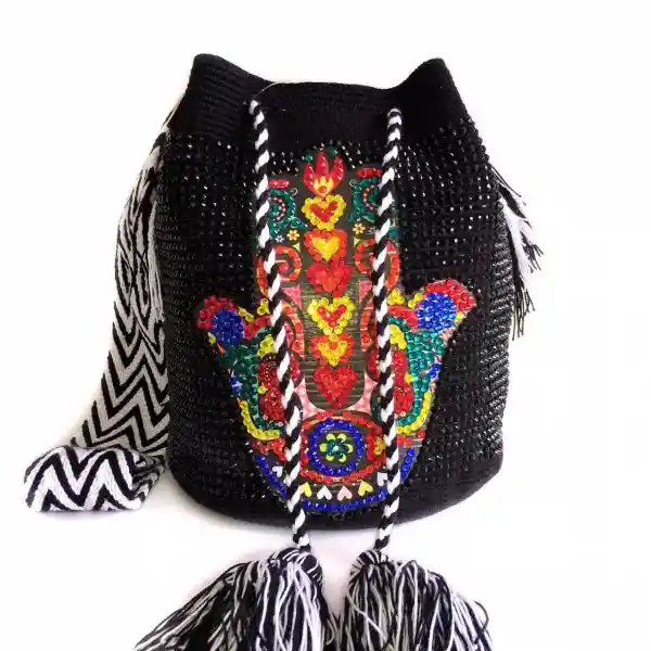 Leeg002 Luxury Mochila Wayuu Grande Tejida En Dos Hebras Decorada Con Cristales En Su Parte Delantera E Imagen En Vinilo