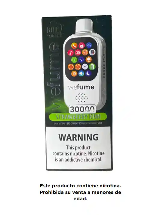 VAPEADOR WEFUME 30.000 VAPEADAS SABOR STRAWBERRY KIWI, RECARGABLE, PANTALLA TACTIL, INDICADOR DE BATERIA COMPATIBLE CON DISPOSITIVOS MOBILES PARA EL USO DE APLICACIONES, ESTE PRODUCTO CONTIENE NICOTINA UNA SUSTANCIA ADICTIVA, PERJUDICIAL PARA LA SALUD , PROHIBIDA SU VENTA A MENORES DE EDAD