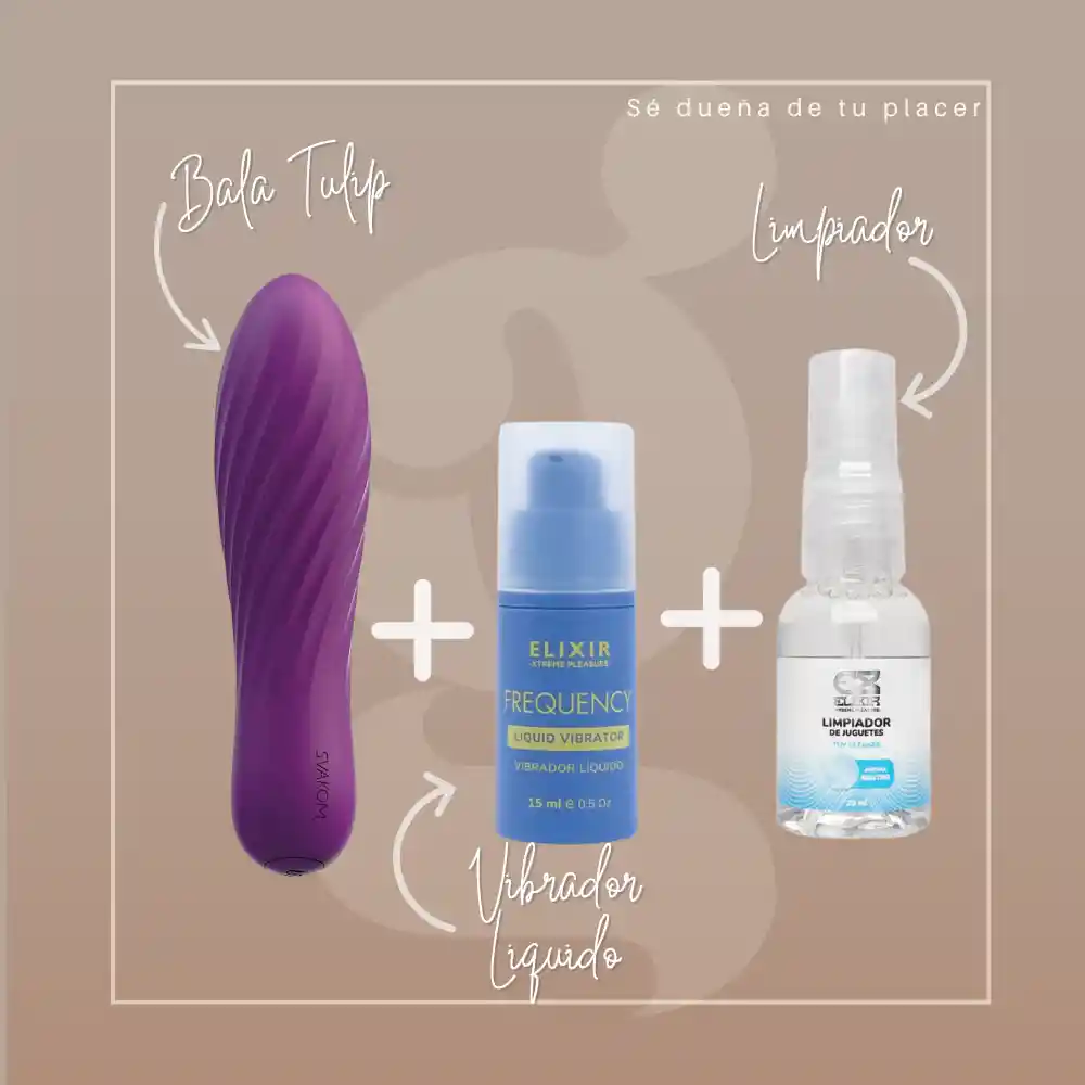 Susurros de placer, sensaciones que estremecen, y ahora con el mejor cuidado. Bala Vibradora Tulip: Compacta, potente y lista para el juego. Con 10 modos de vibración diseñados para explorar cada rincón del placer. Frequency Vibrador Líquido: Un elixir de sensaciones que despierta cada terminación nerviosa con su efecto vibrante y refrescante. Más intensidad, más placer, más experiencias inolvidables. Limpiador de Juguetes Elixir Neutro: Porque el placer también merece cuidado. Mantén tus juguetes como nuevos con una limpieza profunda, libre de alcohol y parabenos. Placer sin límites, higiene impecable. Descubre una experiencia sensorial completa con el Pack Wet Whispers Deluxe.