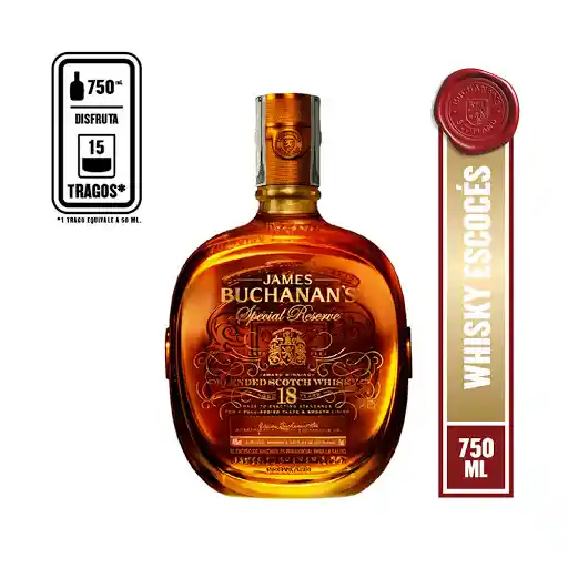 Buchanan´s Special Reserve 18 Años es un whisky añejado por 18 años y elaborado con una mezcla de diferentes tipos de whisky de grano y maltas, ha sido envejecido durante 18 años en barricas de roble de jerez antiguo para crear un tono más profundo y un carácter más fuerte este escocés destaca por su personalidad así como por su excelente calidad y cualidades. Este whisky escocés en botella de 750 ml constituye un regalo muy elegante para quienes disponen de un minibar completo para servir en cualquier celebración.