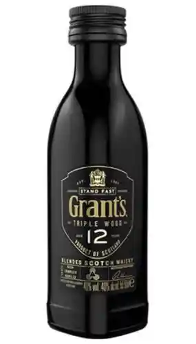 Whisky Grant’s Triple Wood 12 Años 50 ml Blended Scotch Whisky envejecido 12 años en tres tipos de barrica, que aporta mayor suavidad y profundidad. Presenta notas de vainilla, miel, frutas maduras y un toque especiado, con final equilibrado y cremoso. Ideal para disfrutar solo o con hielo, en práctico formato mini.