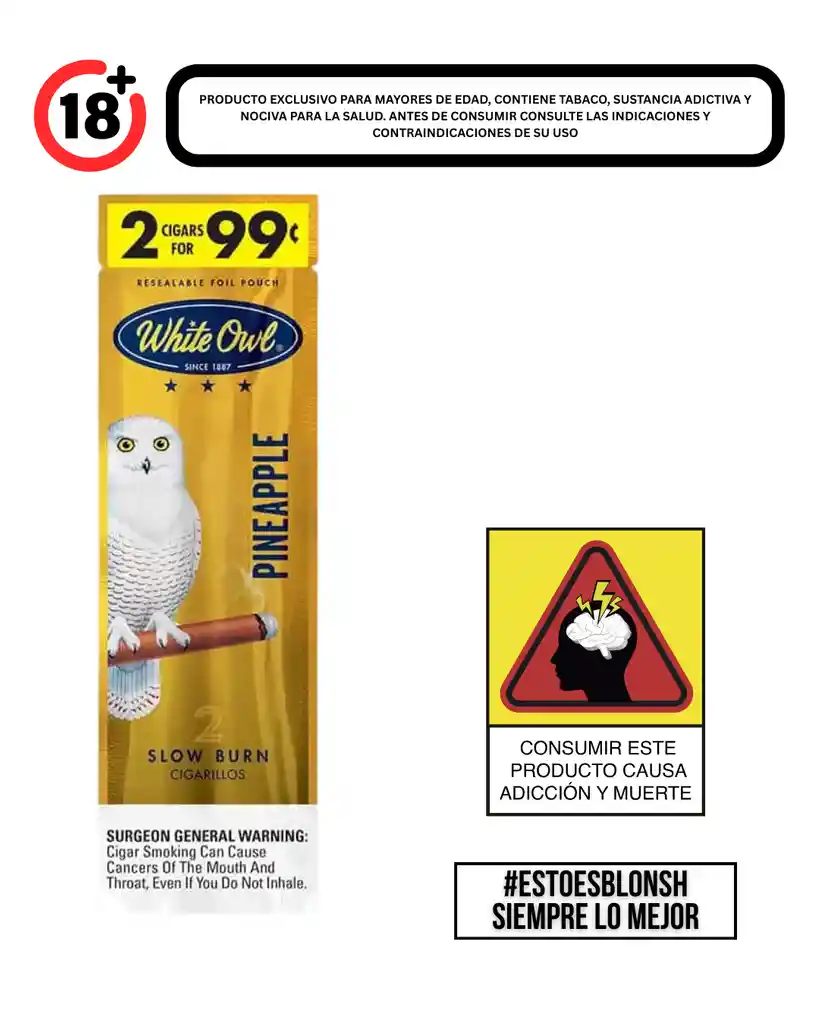 2 SLOW BURN, DELEITATE CON LA VARIEDAD DE SABORES UE TE OFRECE WHITE OWL El tabaco es nocivo para la salud. Ley 30 de 1986. Verificar condiciones de uso, indicaciones y contraindicaciones en la etiqueta. Prohibida la venta a menores de edad