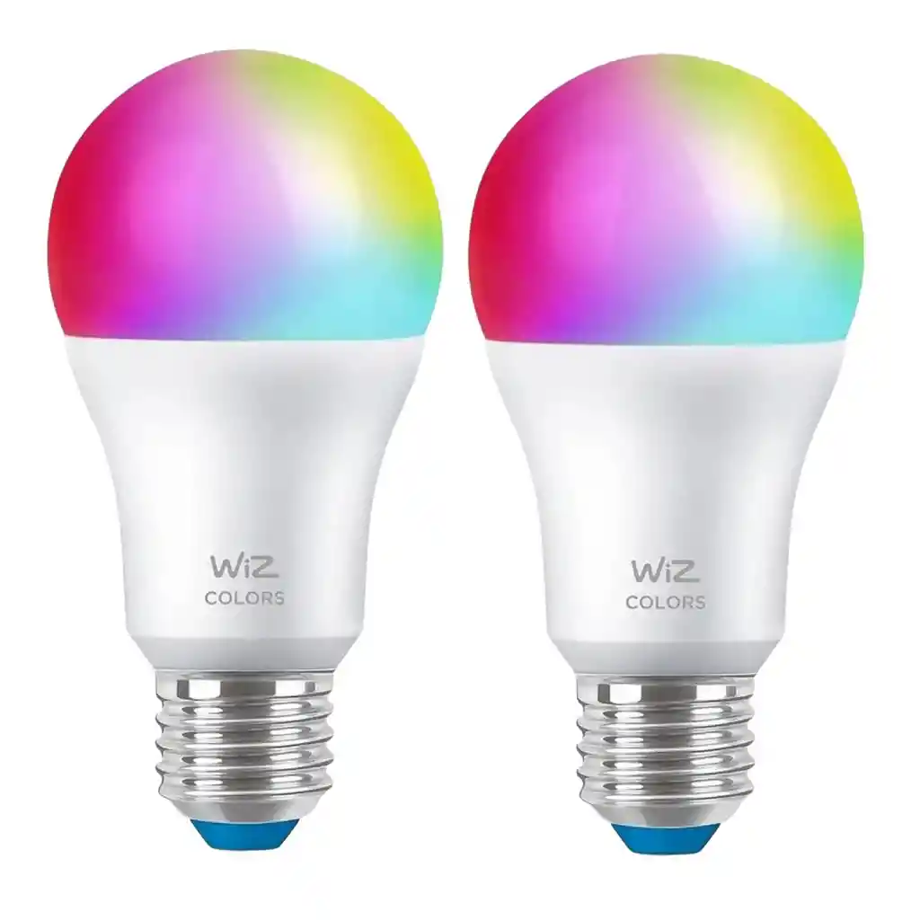 Contiene 2 Unidades. Wiz Bombillo Led Inteligente A19 Wi-Fi Luz Fría y Cálida + Colores. Base E26 Forma Bulbo Potencia en Watts 8.8W Temperatura de Color (K) 2200-6500 (Rgb) Flujo Luminoso 800 Vida Util 25000 H Controla Tus Luces a Través de la Aplicación Wiz o Con Control de Voz Con Google Home, Alexa y Siri. Fácil de Instalar y Usar. Elige la Intensidad de Luz Que Mejor se Adapte a la Actividad Que Quieras Realizar. Además, Disfruta de 16 Millones de Colores Para Darle un Ambiente Único a Tus Espacios. Conecta Tus Luces a Una Red Wifi y Prográmalas Para Que se Adapten a Tus Rutinas