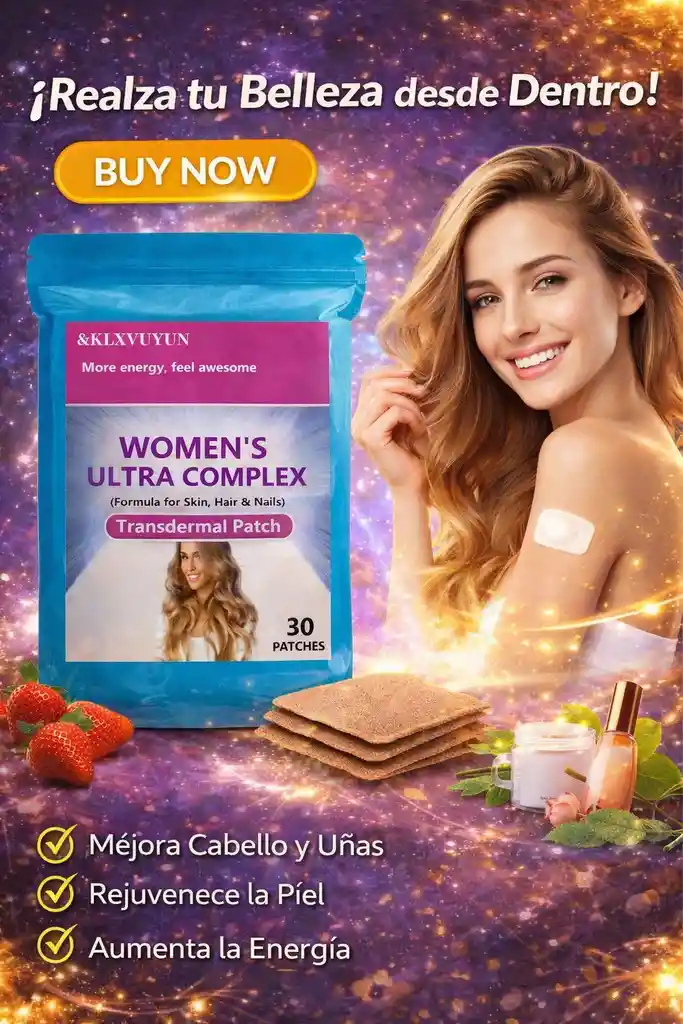 Luce radiante todos los días, desde adentro hacia afuera Descubre Women’s Ultra Complex, el parche transdérmico que cuida tu piel, cabello y uñas mientras te da más energía para tu día. Fórmula especial con vitaminas y nutrientes esenciales Absorción directa a través de la piel, sin pastillas Fácil de usar: solo coloca un parche y deja que actúe Belleza y bienestar en un solo paso Porque sentirte increíble… ¡es tu mejor accesorio! Presentación: 30 parches Uso sugerido: Despega y aplica un parche Easy Moving durante 12 horas cada día sobre una zona limpia, seca y sin vello de la piel. Se recomienda aplicarlo en el hombro, parte interna del antebrazo, cadera o espalda para obtener mejores resultados. Rota el lugar de aplicación en cada uso. Suspende su uso si aparece irritación o sarpullido. No reutilices los parches.