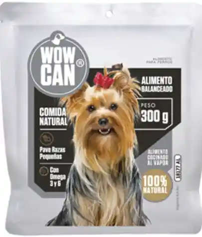 WOW CAN Dieta Pavo es un alimento húmedo, natural y cocinado al vapor, diseñado como dieta completa o complemento, ideal para perros de razas pequeñas con paladares exigentes,