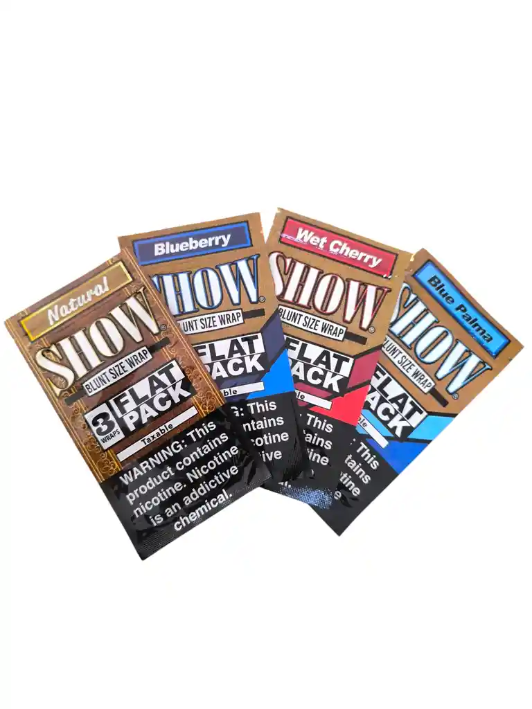 Blunt Show es un wrap para armar cigarros hecho con pasta de tabaco y aromatizado. Son ideales para hacer cigarros King Size bien rellenos ya que este tipo de papel es más grueso que cualquier otro. Tienen un sabor dulce que es muy suave y al quemarse despiden aromas dulces muy agradable. Vienen en sobres con cierre hermético de 3 unidades en formato plano.