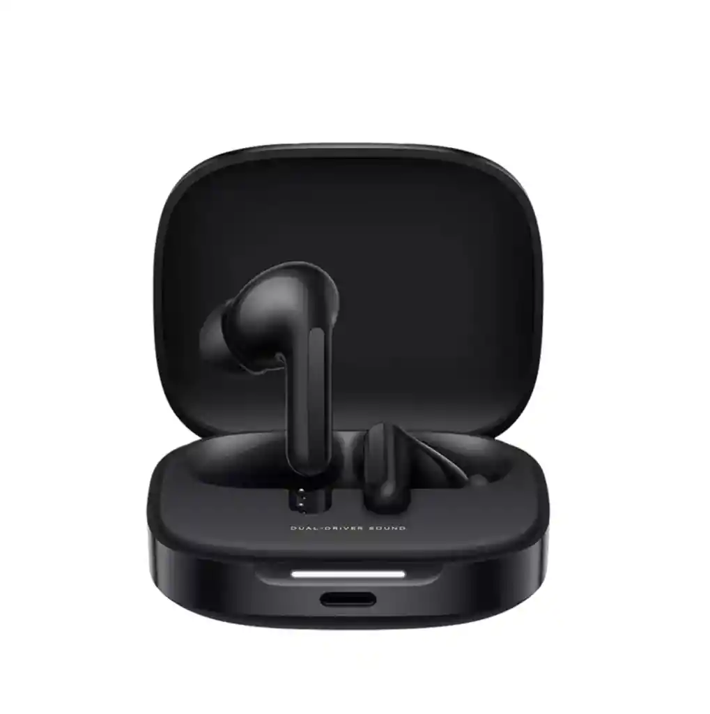Especificaciones Modelo M2429E1 Colores disponibles Negro noche Blanco nube Verde coral Dimensiones y peso Dimensiones de un solo audífono: 31.13mm × 21.34mm × 23.5mm Dimensiones del estuche de carga: 61.01mm × 51.71mm × 24.80mm Peso de un solo audífono: 5.0g Peso total: 43.2g Carga Capacidad de la batería Audífonos: 54mAh Estuche de carga: 475mAh Puerto de carga: USB-C Parámetros de entrada del audífono: 5V 150mA Parámetros de entrada del estuche de carga: 5V 500mA Parámetros de salida del estuche de carga: 5V 300mA Conexión Conectividad inalámbrica Bluetooth® 5.4 Protocolos Bluetooth: Bluetooth® de bajo consumo / HFP / A2DP / AVRCP Rango de comunicación: 10m (en espacios abiertos sin obstáculos) Contenido del paquete: 2 Redmi Buds 6 1 estuche de carga 1 cable de carga tipo C 1 manual del usuario Almohadillas pequeñas (2 piezas) Almohadillas grandes (2 piezas) Tira de luz indicadora de batería completamente nueva Cuando los audífonos estén emparejados, todas las luces del estuche de carga se encenderán y parpadearán. También puedes verificar el nivel de batería encendiendo y apagando el estuche o presionando el botón. COLOR SUJETO A DISPONIBILIDAD